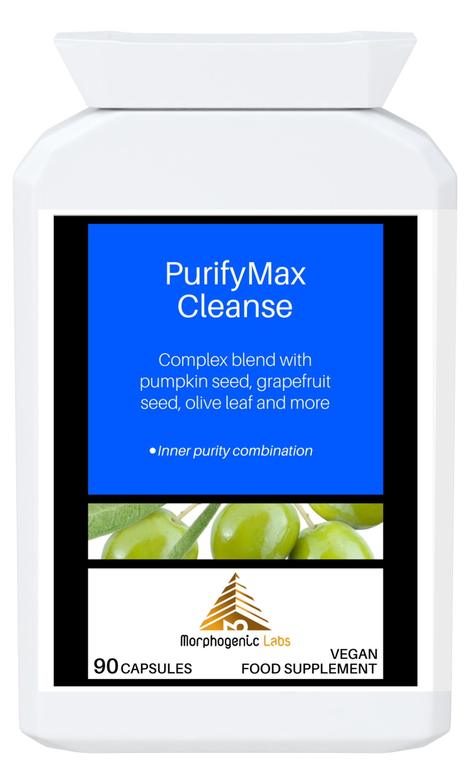 An inner purity blend of active herbal ingredients for gastrointestinal support, including pumpkin seed, clove bud, konjac, lapacho bark (Pau D’Arco), olive leaf, shiitake mushroom and more.